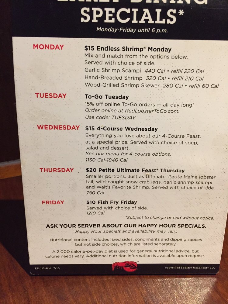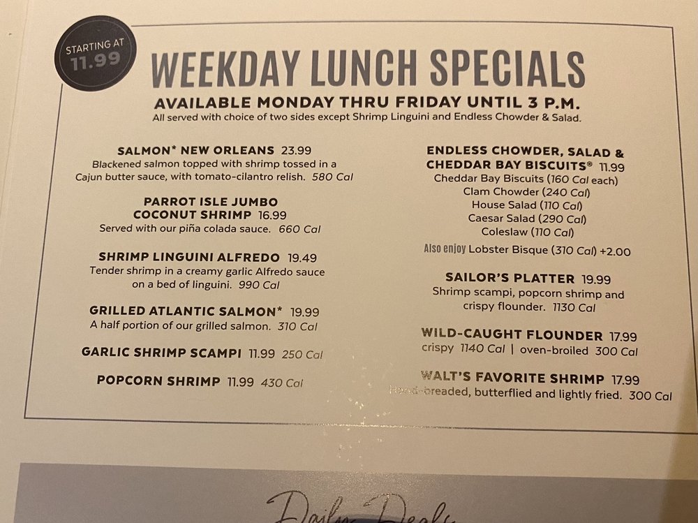 Red Lobster OR Menu