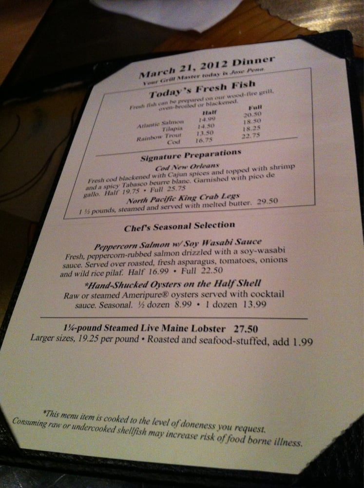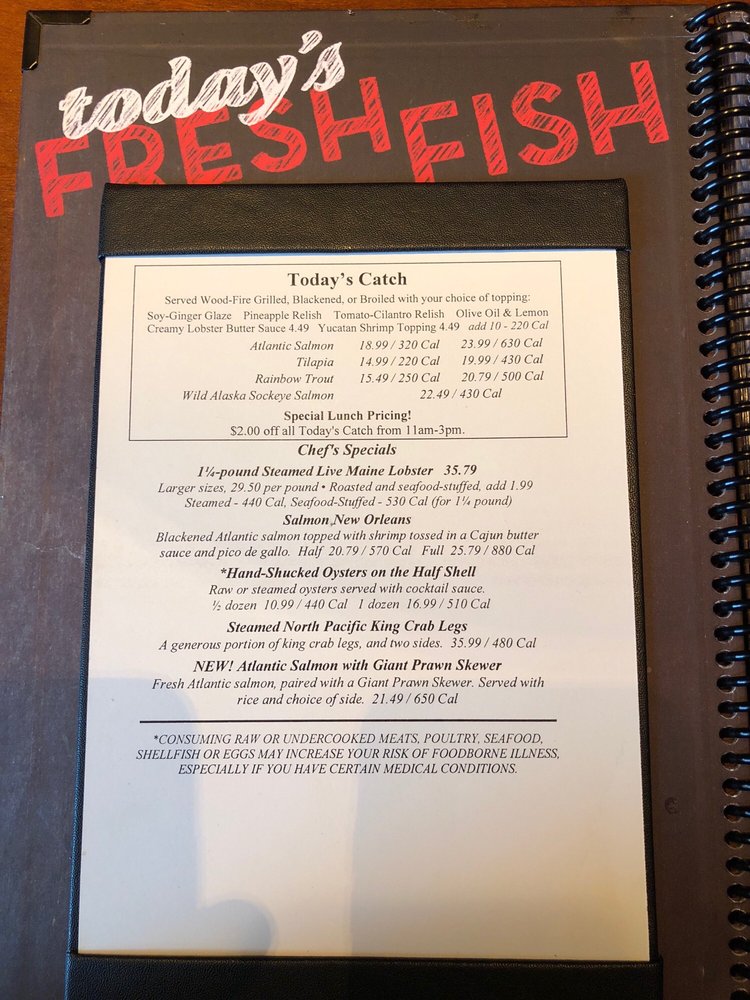 Snow Crab Legs (380 cal), Grilled Sea Scallops (280 cal), Maine Lobster Tail (420 cal), Atlantic Salmon* (510 cal), 7 oz. Sirloin* (320 cal)